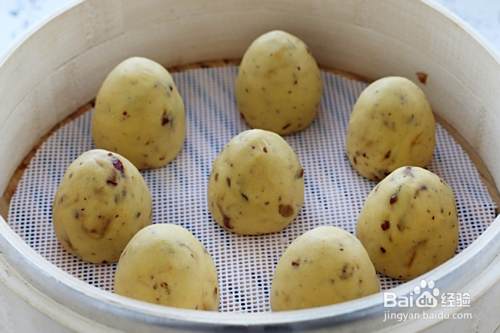将整好形状的窝窝头排放蒸笼内,热水上锅大火蒸15-20分钟出锅即可。