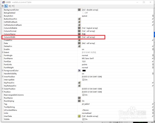 第二步:我们点击我们的GUI界面uitable表格,打开表格属性编辑器,如下图所示,我们点击【ColumWidth】右侧的编辑图标。