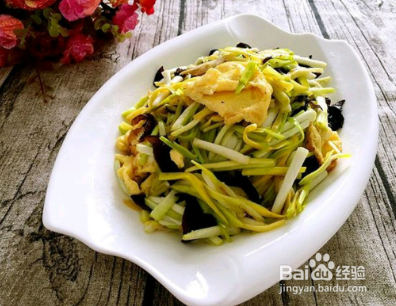 最后把提前炒好的鸡蛋倒入蒜黄里