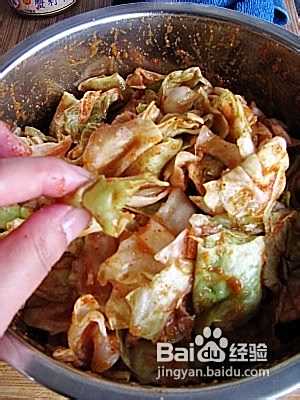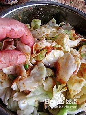 加入韩式辣酱拌均匀成为酱料,然后放入圆白菜抓拌。