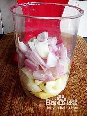 准备好调味料。苹果,梨去皮切块和洋葱,大蒜,生姜一起放入搅拌机。
