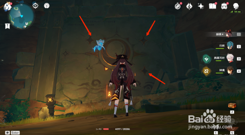 玩家传送到知比山的传送锚点,往下跳,到知比山底部,找到入口。然后进入第一个电气机关控制的石门,然后往箭头方向走,即可到达壁画与火柱子处。