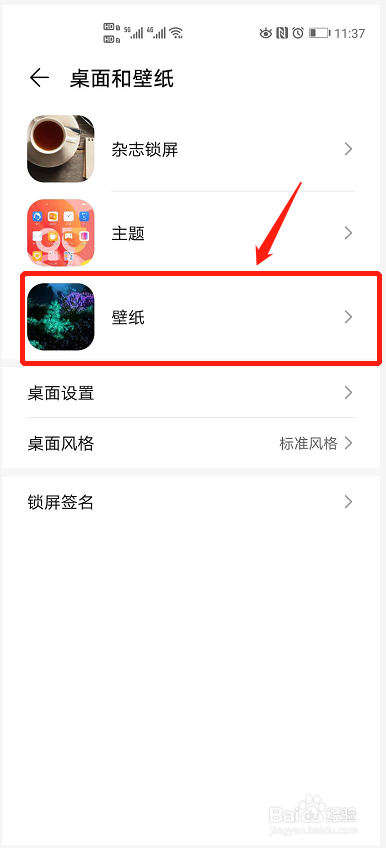 进入桌面和壁纸页面,点击【壁纸】