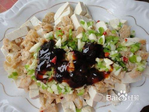 制作:1、嫩豆腐切成1.2厘米见方的丁,开水浸烫数次,沥干水分,晾凉装盘。2、虾米用沸水烫一下,放入碗中,加入酱油、精盐、味精、红油、芝麻油、葱姜末拌匀,浇在豆腐丁上即可。