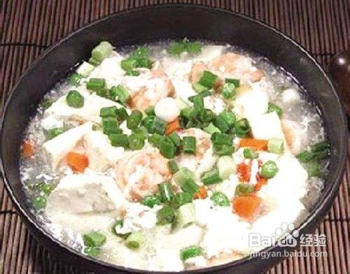 原料:嫩豆腐500克,虾米50克,酱油10克,葱姜末5克,精盐2.5克,味精2克,芝麻油20克,红油5克。