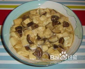 制作:1、豆腐切成小块,放入冷水锅内,加少许料酒,用旺火煮至豆腐周围有小洞时,把煮豆腐的水去掉。2、豆腐内加入笋片、鲜蘑菇、酱油、精盐和清汤(以没过豆腐为准),用小火烧20分钟,撒入味精,淋入香油即可。