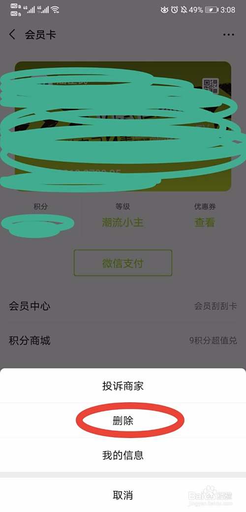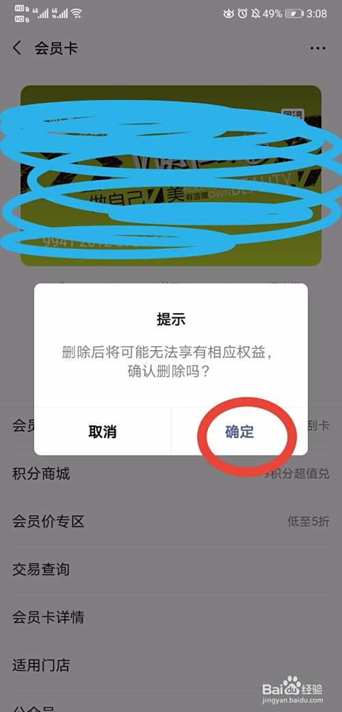 只要点击删除,并且确认,就可以把这个对应的会员卡,共卡包里面删除了。