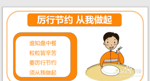 第五步,边框里写上关于“厉行节约 从我做起”的标语。