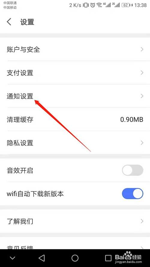 6:“设置”页面根据指引点开“通知设置”一栏。