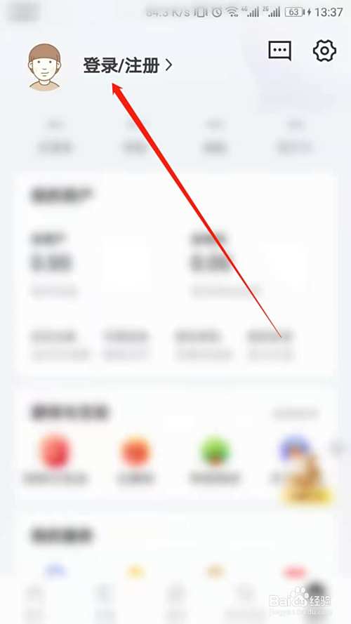 4:“我的”页面根据指引点击“登录/注册”京东金融APP。