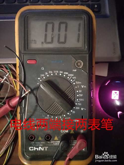 数字万用表进入电线以后万用表不响,而且显示屏的数字显示“1”。说明电线有断点。此时用手一端一端地去揉动电线,揉动到那一段数字万用表有了响声,断点就在那一段。
