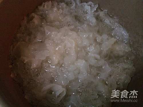 1把干银耳分成小块浸泡三个小时以上