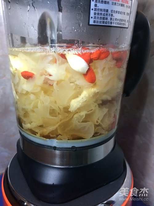 4把破壁机杯子洗好,倒入泡好的银耳
