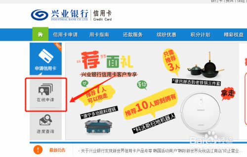 兴业银行信用卡申请办理需要打开官网,点击信用卡进行申请,选择卡面填写信息即可。