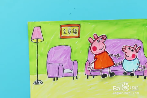 对佩奇和乔治进行上色;然后将他们剪出来。