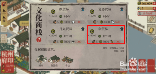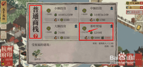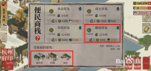 江南百景图杭州府5个商栈,一个普通商栈,其余4个商栈都升级成商业客栈,收益将达到最高点。