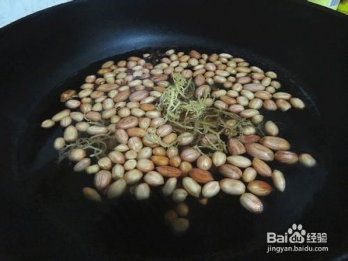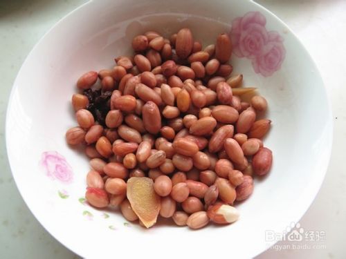 锅中加入半锅水,倒入花生、花椒、八角、姜片和盐煮熟