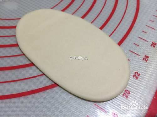 10. 将包好馅的面团搓成椭圆形,用擀面杖轻轻将两头压扁