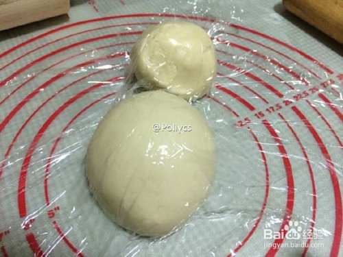 1. 水油皮,中筋面粉75克、糖9克、猪油23克、水36-39克(面粉吸水量不同)揉光,盖上保鲜膜醒30min。油酥,低筋面粉60克、猪油30克混合成团