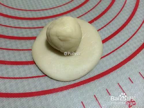 3. 取一份将水油皮擀圆包裹住一份油酥,