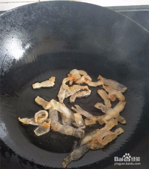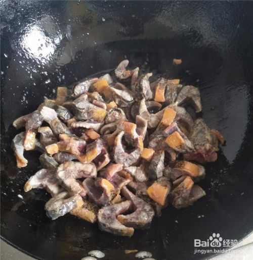 猪油都煎出来后,转成大火,放入鳝鱼段,用锅铲翻炒。
