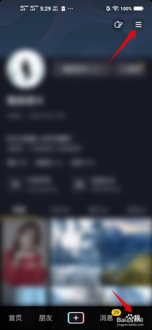 打开抖音我的页面,点击右上角的三道杠。
