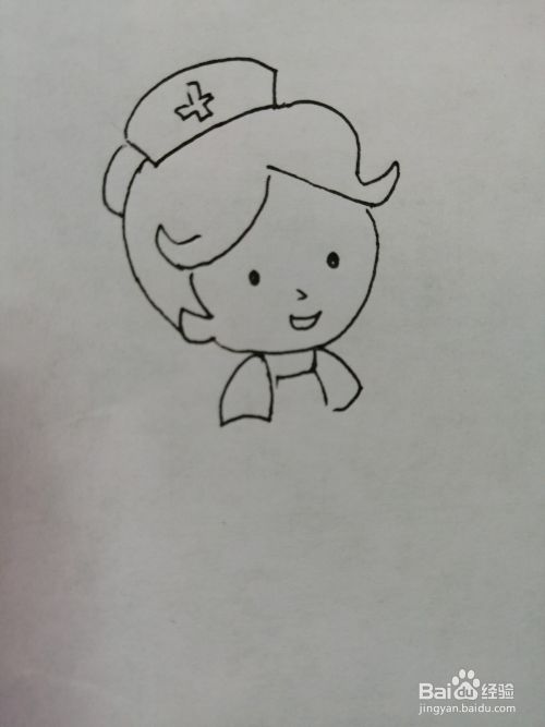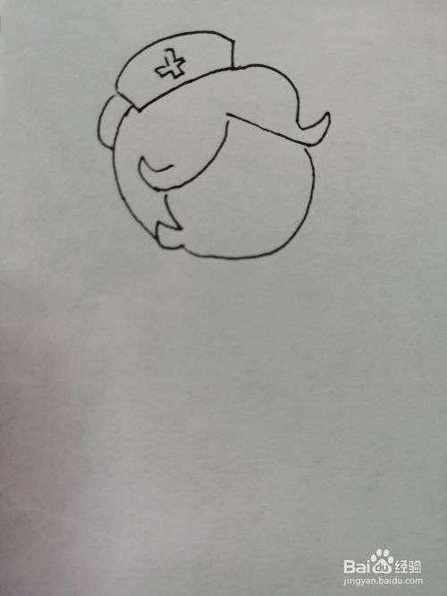 第二步,接着画出漂亮的护士的可爱的耳朵。