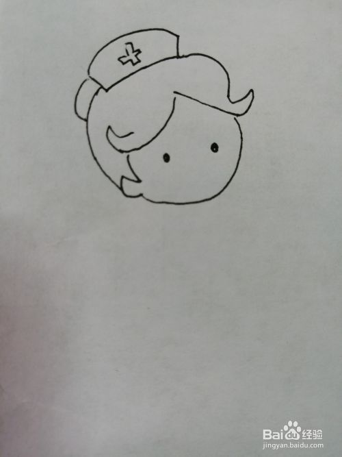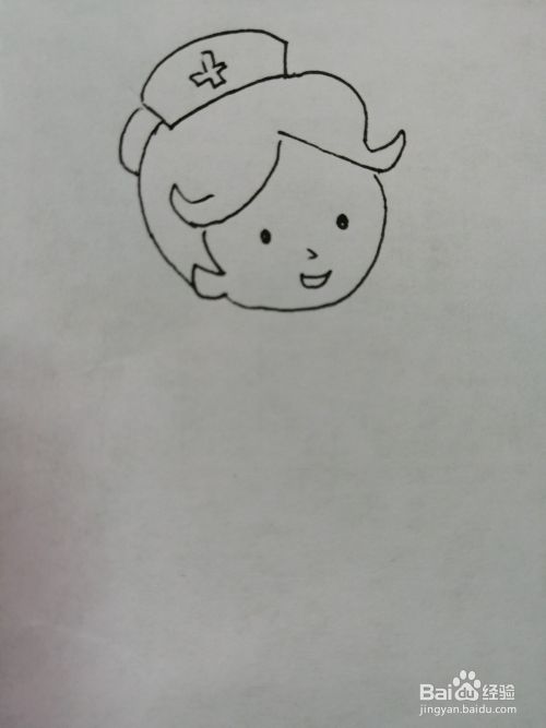 第四步,接着画出漂亮的护士的两只大眼睛和小小嘴巴。