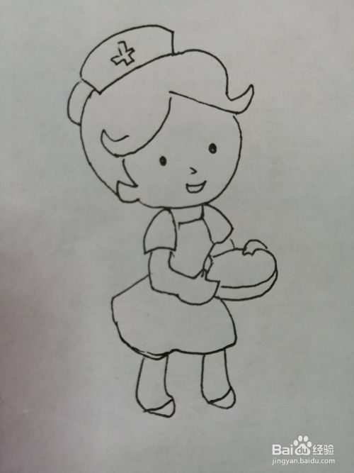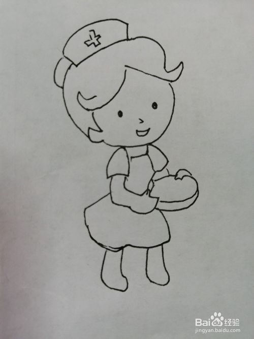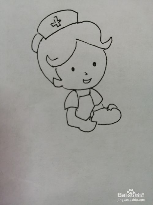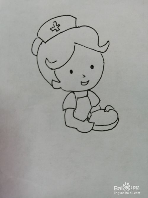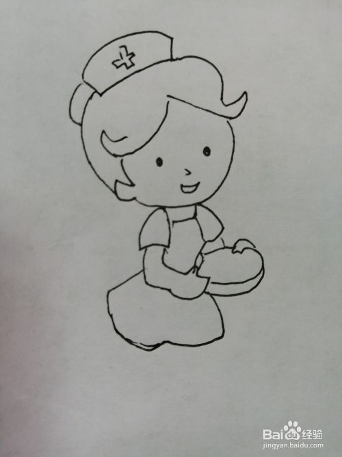 第七步,然后画出漂亮护士的漂亮的小裙子。