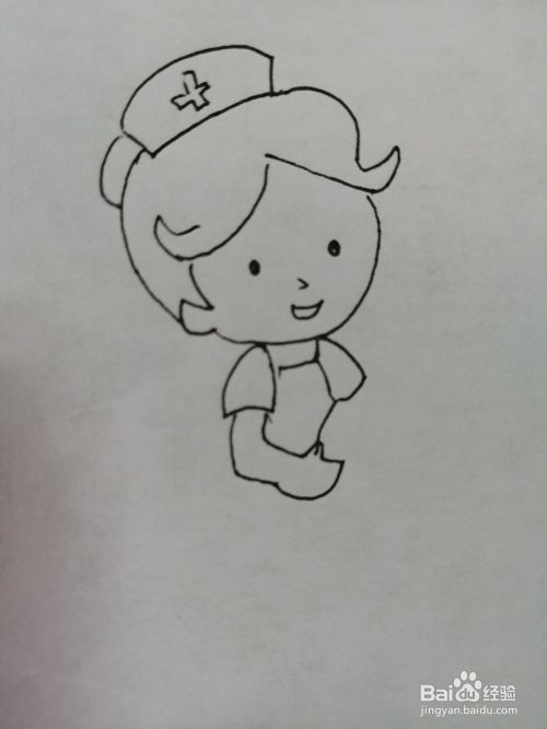 第八步,最后把漂亮护士的大长腿和鞋子画出来。漂亮的护士姐姐就画好了。