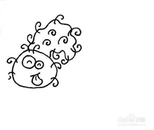 1、先画一个不规则的圆形,在圆形后面用波浪线围成不规则的圆形。