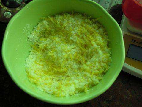 3将糖和柠檬皮混合均匀