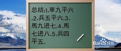 总结:1、車九平六。2、兵五平六。3、馬九进七。4、馬七进八。5、兵四平五。