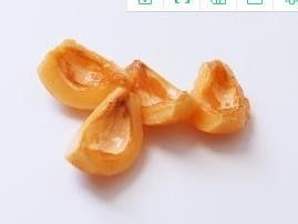 把核去掉。核与果肉之间有一层膜,要是有时间,就把这层膜撕掉。再切一刀,一颗枇杷分成四瓣。