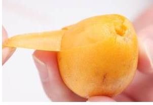 用刀切掉枇杷的蒂,然后就可以一片一片撕开枇杷的外衣了。
