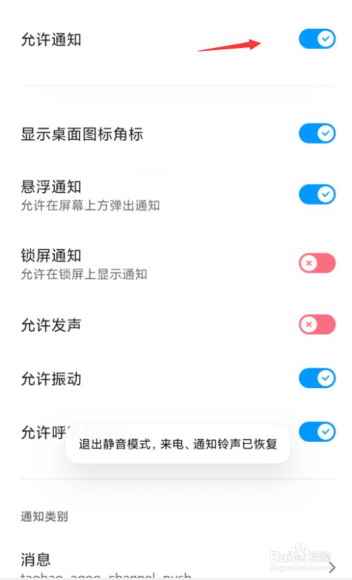 5、允许通知或者是关闭通知,根据自己的需要设置其他选项