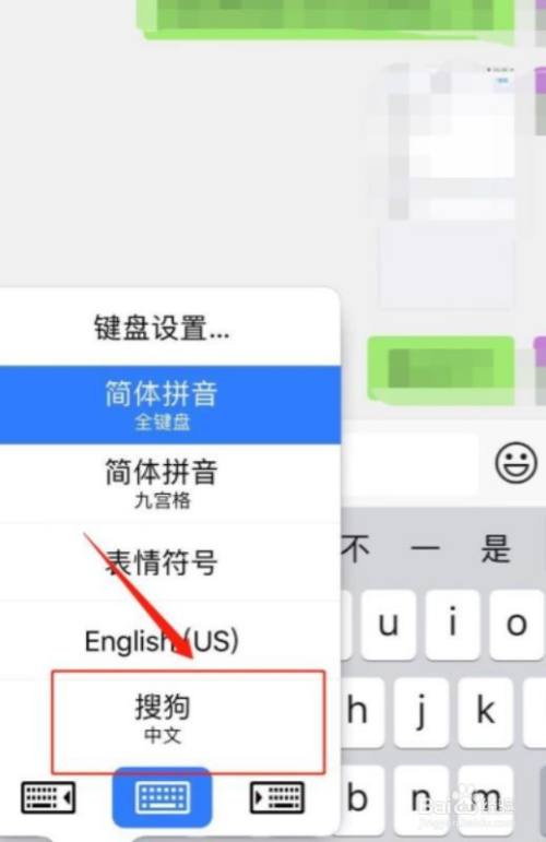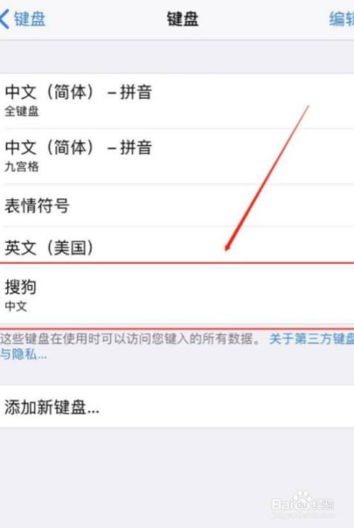 进入键盘页面,点击底部的添加新键盘,选择搜狗。