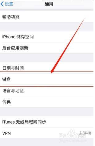 打开设置,点击进入通用,进入通用页面后,点击键盘选项。