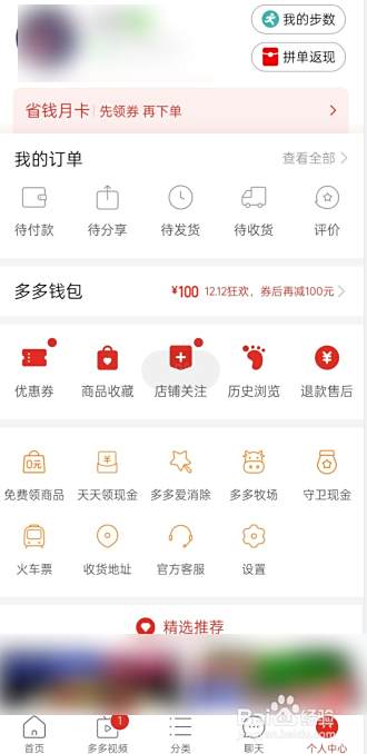 打开拼多多APP,点击右下角个人中心。