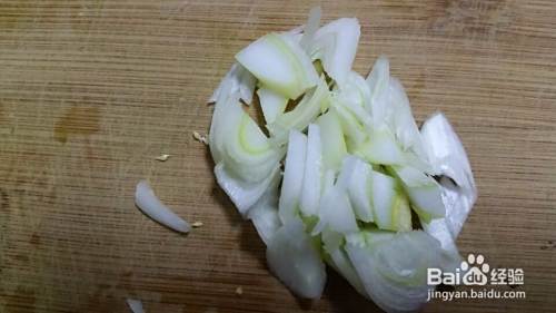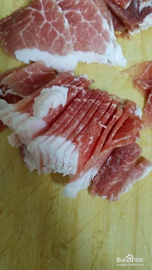 渣豆腐盛在碗里;切一些肉片,肉片尽量大一些;葱花切碎。