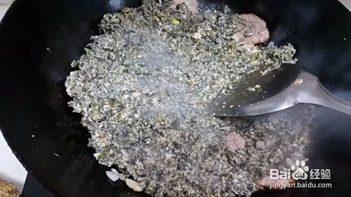 一直翻炒,可以让肉片融入渣豆腐中,用渣豆腐的汤汁,熬一下肉片,让两者的味道充分融合。炒到汤汁收的差不多时,关火,盛盘。