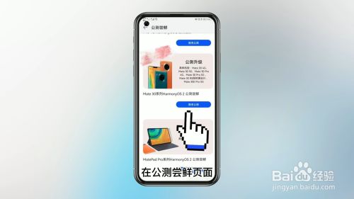 在公测尝鲜页面找到要升级的mate20pro型号,点击报名公测
