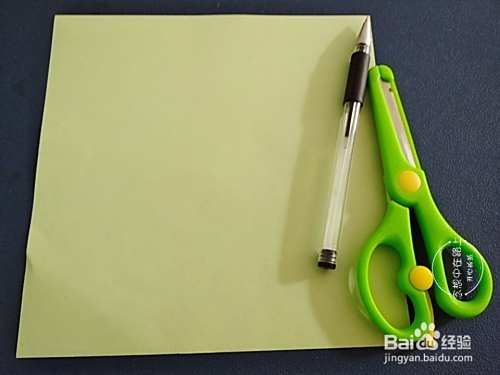 首先准备好一张三角形的彩色纸、一支笔和一把剪刀,