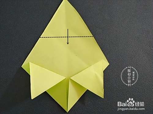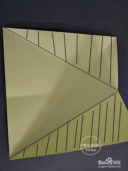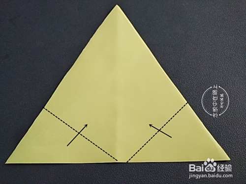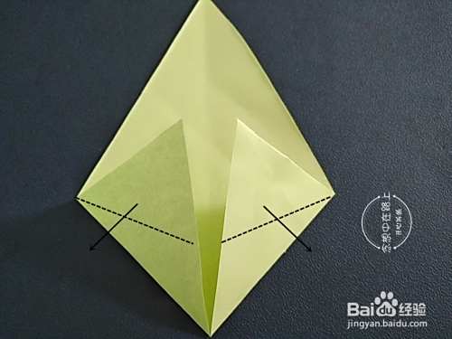如图:沿着虚线朝箭头方向折叠,调整好位置。