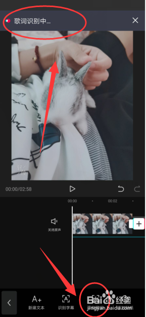 然后再点击【识别字幕】,在上方会显示【歌词识别】中,如下图所示。
