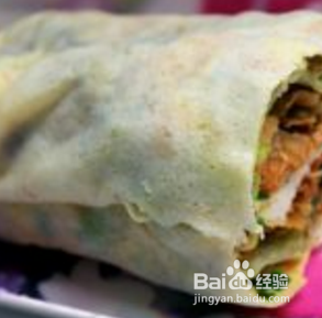 到中间,用篦子把面团推到面糊筒里,面糊遇热很快就熟,煎饼从鏊子上揭下,很柔软,冷却后变脆。放在盖帘上。