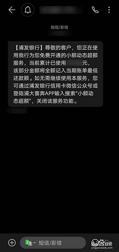 使用浦发信用卡如果刷卡额超过可用额度,会收到短信提示免费开通了小额动态超额服务;