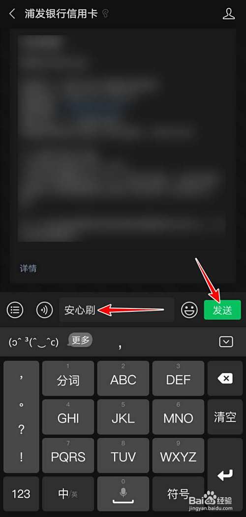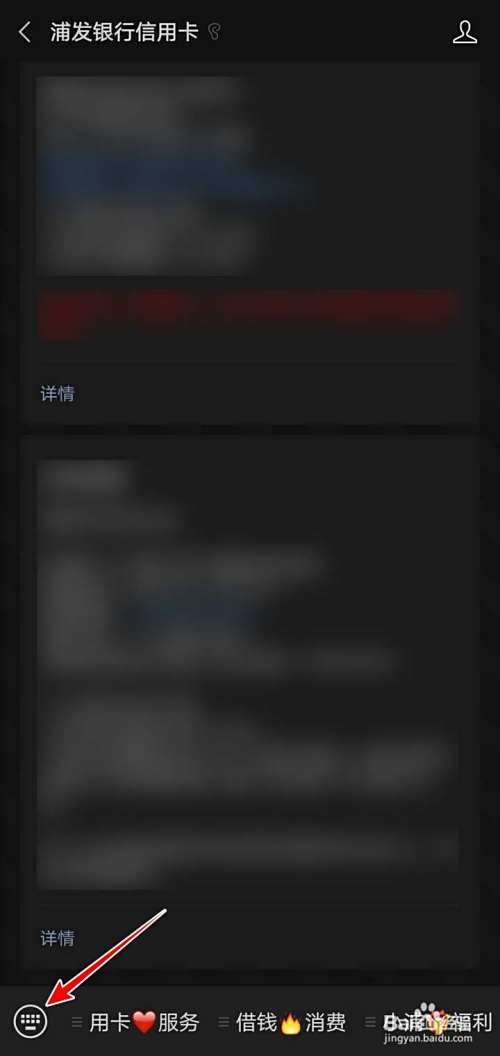 进入浦发银行信用卡公众号预览页面,点选进入公众号,再点选左下角的键盘图标;