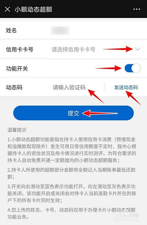 进入详细设置页面,选择卡号,关闭功能开关,输入短信动态码,点选提交;