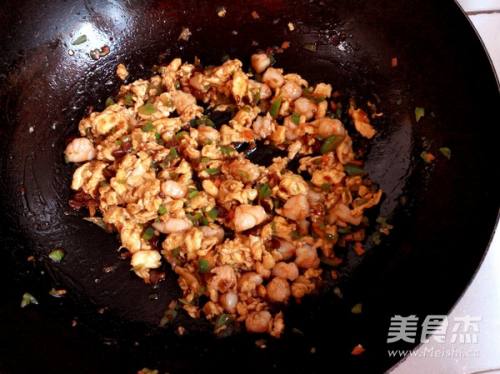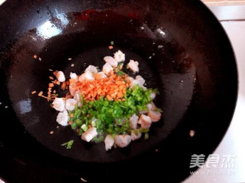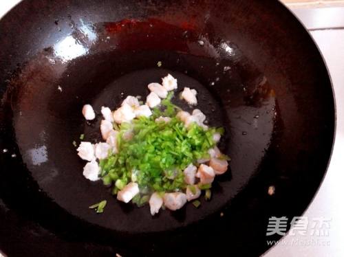 锅中放油,放入虾仁翻炒至变色